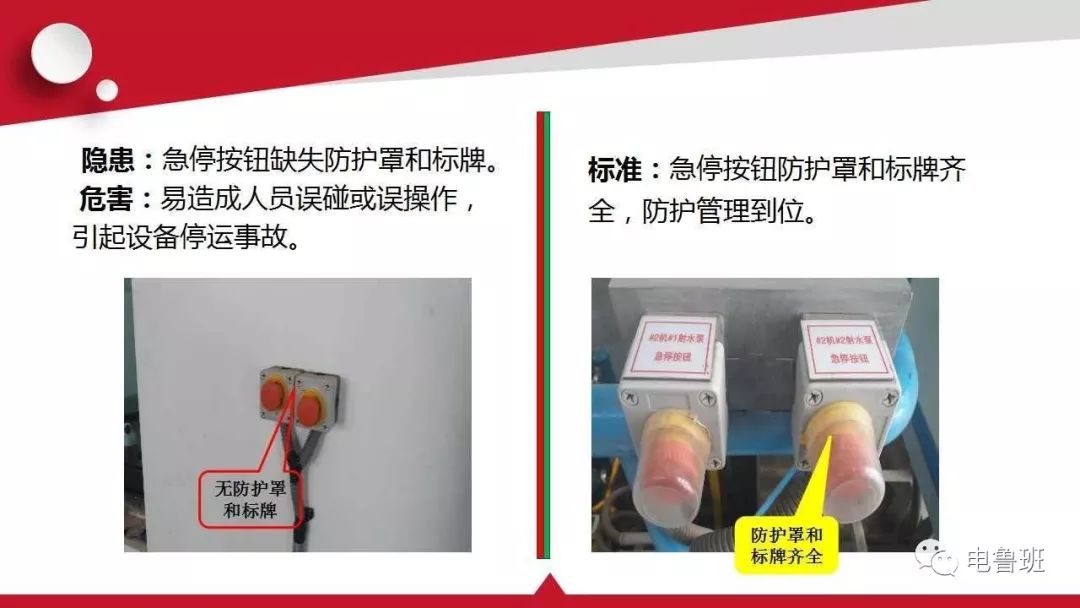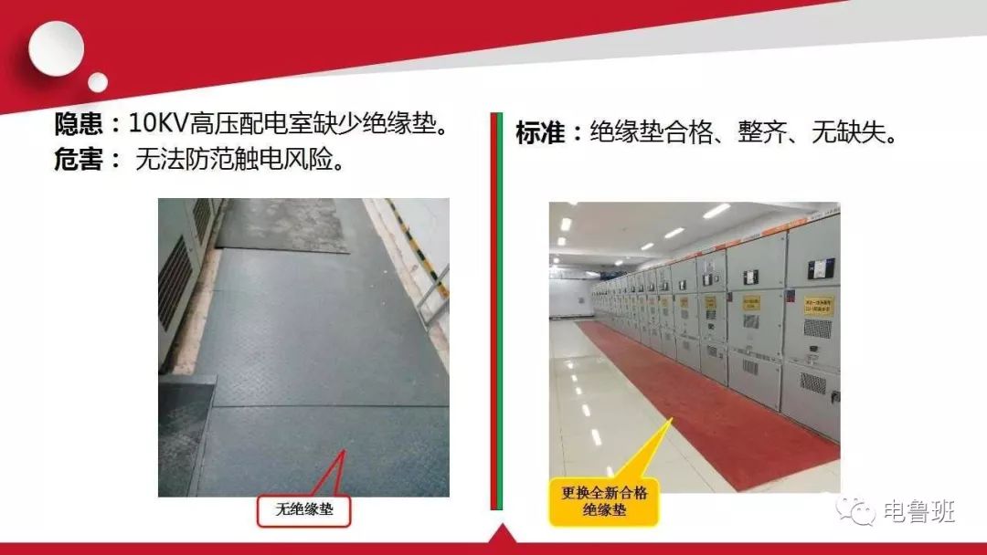 及時發(fā)現(xiàn)設備故障的前期征兆,將設備故障消除在萌芽狀態(tài),才能做到安全生產。下面分享幾組電氣設施隱患排查與標準對照,各工廠、企業(yè)負責人或者員工可以對比自查。
